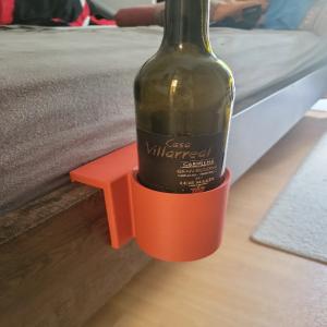 Cupholder to sit on top of a board, for example on a bed. PLA + size 127 x 100 x 100 mm.