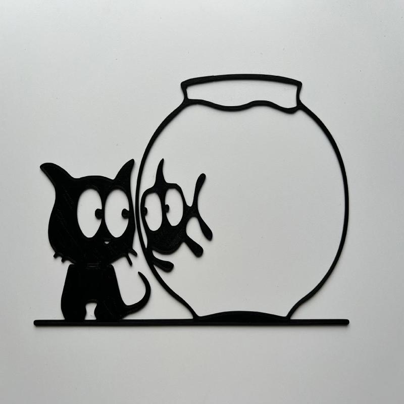 Cat and Fish Wall Art, detailed wall art model. Print 15% infilled. Material PLA+. Size 248x215.