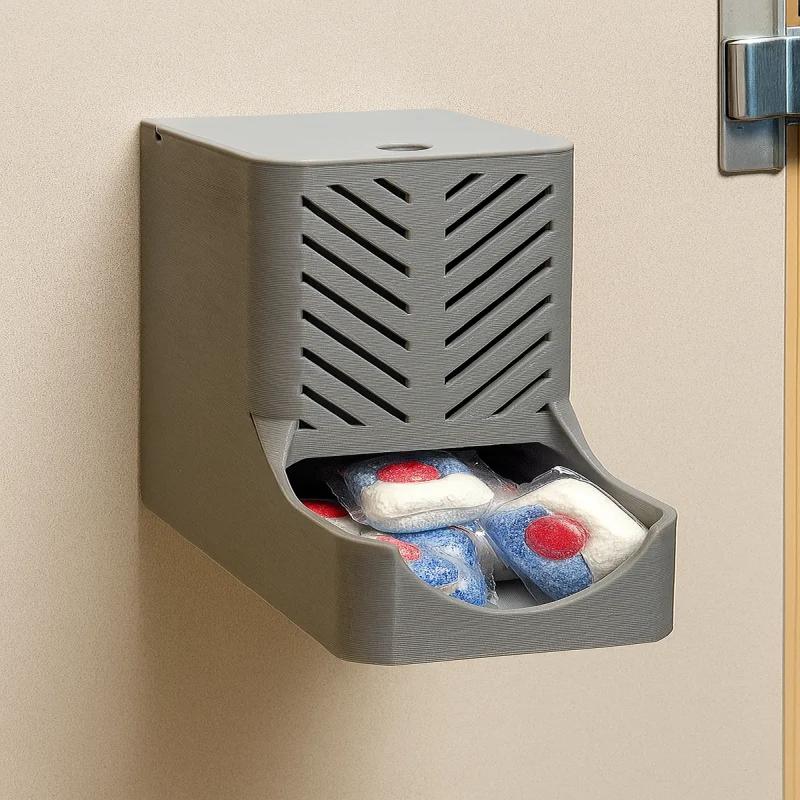 A no-nonsense, ultra-durable 3D-printed dispenser designed to hold dishwasher tablets without fail. Features a minimalist yet robust design, with flexible mounting options: glue it, screw it (two 5mm fixture holes 50mm apart), or both for maximum security. Material PLA+. Size 100x150x160mm.