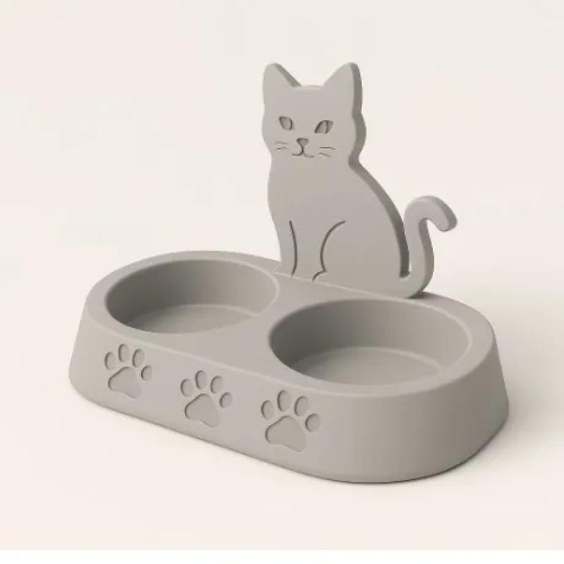 Double Bowl Cat Food & Water Dish