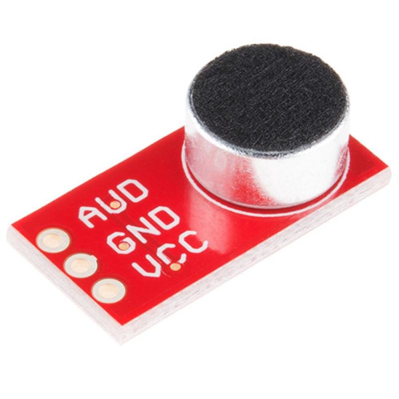 This microphone breakout board features a compact electret microphone paired with a 100x op-amp, amplifying sounds such as voice, taps, or knocks for detection by a microcontroller’s ADC input. Fully assembled and ready to use, it operates from 2.7V to 5.5V, making it ideal for audio sensing projects.