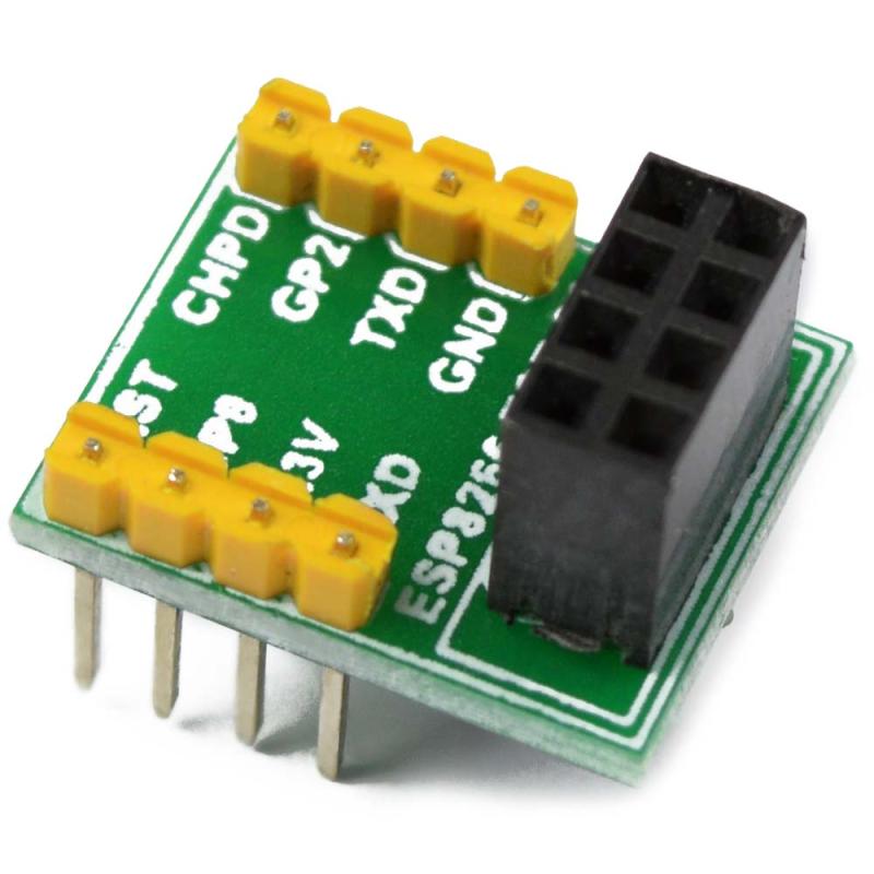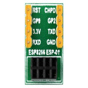 The ESP-01 module exposes power and I/O pins through a 2×4 male header. However, its pin layout is not breadboard-friendly and the pins are unlabeled, which can make prototyping challenging. The ESP8266 ESP-01 Breadboard Header solves this problem by featuring a 2×4 female header to accommodate the ESP-01 module, while breaking out the pins into two single-row male headers that are clearly arranged and breadboard-compatible for easier access and development.