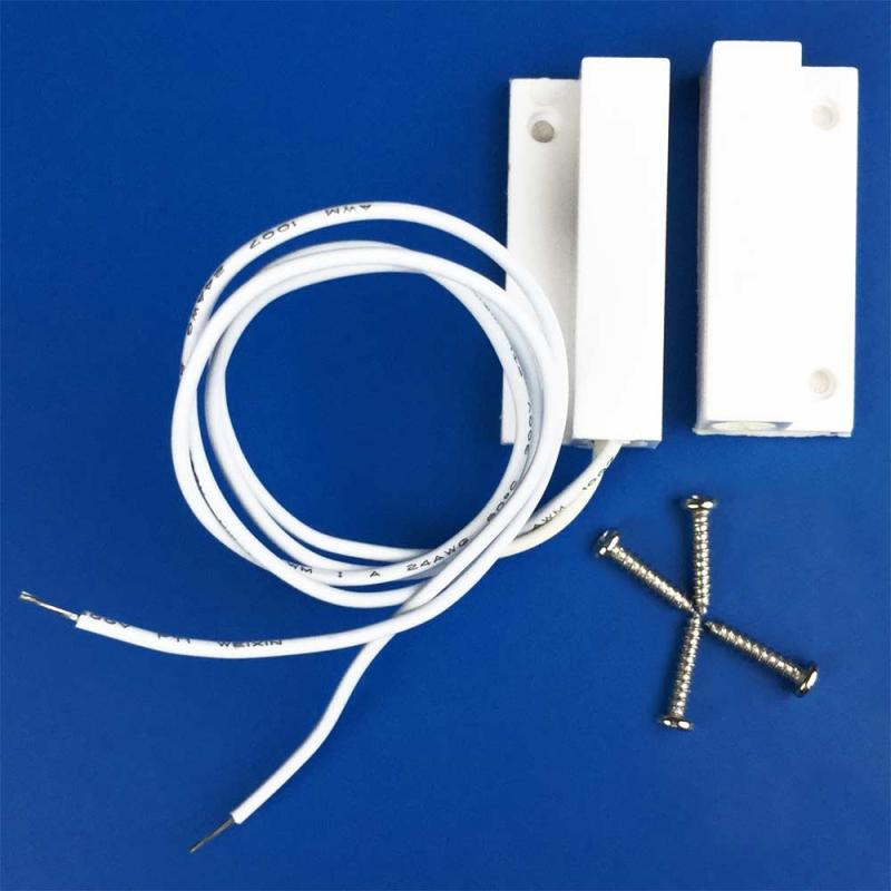 The Magnetic Door Switch Set is a compact reed switch assembly designed to detect when doors, drawers, or other openings are accessed, making it ideal for home security systems. One piece mounts to the frame and the other to the door or window; when separated, the circuit breaks and triggers an alarm.