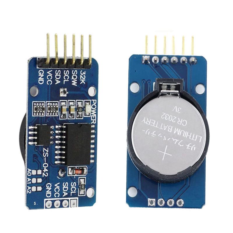 The DS3231 RTC EEPROM module is a high-accuracy real-time clock with battery backup, ensuring precise timekeeping even during power loss. It features a 4K × 8-bit EEPROM for data storage and communicates via the I²C interface, making it ideal for logging, scheduling, and embedded system applications.