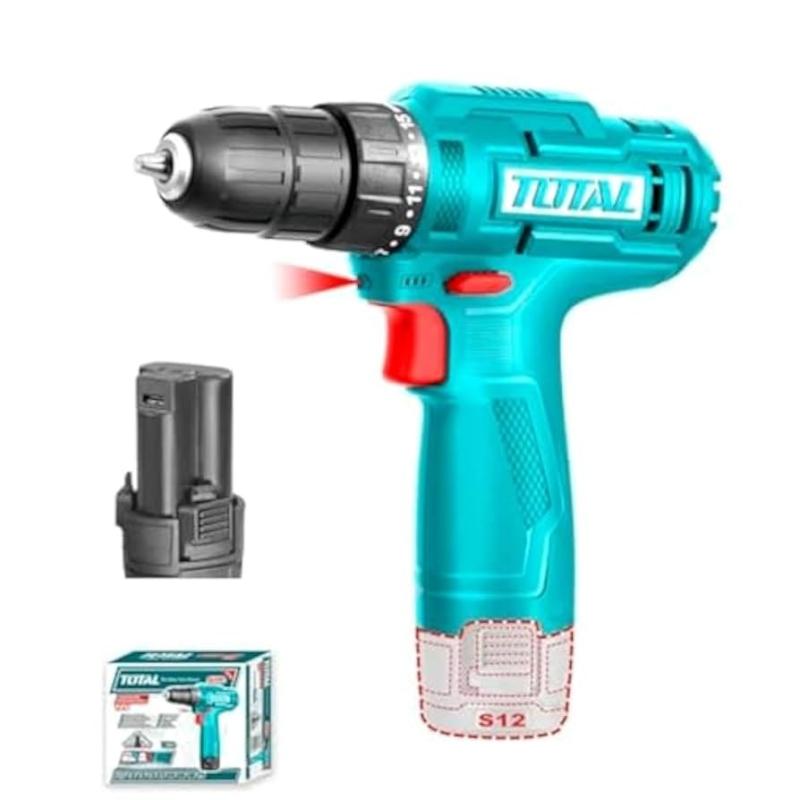 The Total TDLI12428 is a compact and versatile 12V cordless drill designed for both DIY enthusiasts and professionals. It offers a blend of performance and convenience, featuring USB Type-C charging for modern compatibility.