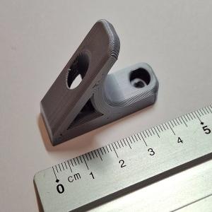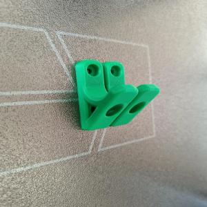 This is a compact and strong wall hook designed for general use. It mounts securely to the wall using two screws (3 mm diameter, holes are 3.3 mm), providing reliable support for various items. Material PLA+ size 25x12mm.